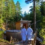 När du bokar boende i glashus har du också möjlighet skämma bort er med att att boka till vedeldad bastu och/eller badtunna, precis vid sjön.